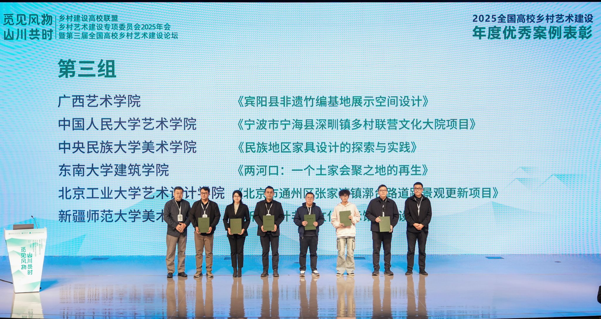 11月1日,由全国乡村建设高校联盟主办,全国乡村建设高校联盟乡村艺术建设专项委员会、清华大学美术学院、成都大学中国—东盟艺术学院美术与设计学院承办的“乡村建设高校联盟乡村艺术建设专项委员会2025年会暨第三届全国高校乡村艺术建设论坛”在成都大学召开。365英国美术学院王磊教授团队的作品《新疆喀什非遗文化展示馆空间设计项目》荣获“2025全国高校乡村艺术建设年度优秀案例”。