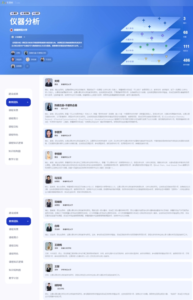 在国家“新一代人工智能发展规划”和“教育信息化2.0”政策背景下,智慧教育成为教育领域的重要发展方向。教育部高等教育司在“人工智能引领高等教育数字化创新发展”中指出,教育部将推动人工智能等信息技术与教育教学深度融合,开展“智能+教育”改革试点,建设一批智慧课程。此次上线的《仪器分析》作为化学及相关专业的核心课程,涉及前沿理论知识和丰富实验技能。通过将该课程构建成AI数智共享课,不仅提升了教学资源的利用效率,更为学生提供了个性化、智能化的学习体验,赋予了传统课程新的生命力。