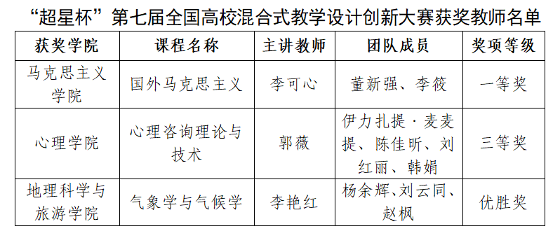 近日,“超星杯”第七届全国高校混合式教学设计创新大赛圆满收官。在此次大赛中,代表学校参赛的三支教师团队凭借其先进的混合式教学理念、精妙的教学设计和显著的教学成效,在激烈的全国竞争中脱颖而出,斩获3项荣誉,其中一等奖1项、三等奖1项、优胜奖1项,充分彰显了学校在混合式教学改革领域的显著成效。