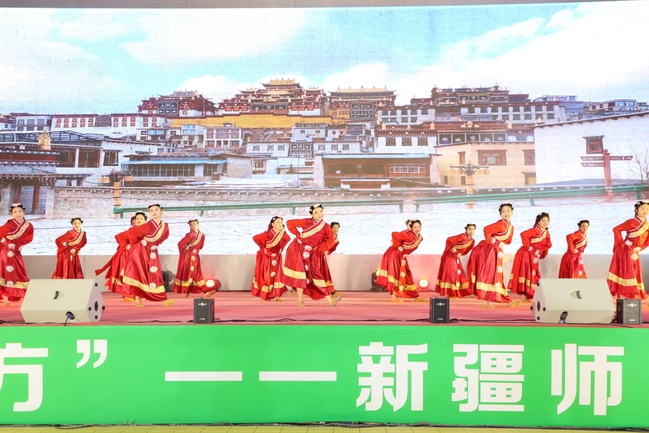 四月维夏,骊歌唱响。维吾尔族舞蹈《绽放》、藏族舞蹈《心声》、哈萨克族民歌《故乡》、维吾尔族民歌《牡丹汗》,带领现场师生感受新疆的神秘与壮美。民族舞蹈串烧《心舞万家》《民族团结大联欢》展现出我国多民族大家庭的团结与和谐,各族舞者身着传统服饰,用各具特色的舞蹈形式,共同编织了一幅幅绚丽多彩的民族画卷。