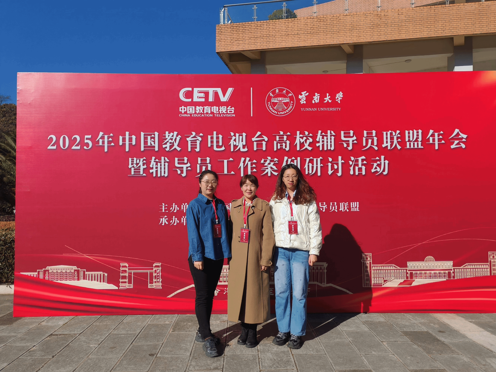 为深入学习贯彻党的二十届四中全会精神,推动新时代高校思想政治工作高质量发展,12月4日至7日,2025年中国教育电视台高校辅导员联盟年会暨辅导员工作案例研讨活动在云南大学举行,来自全国100余所高校的学工部长、辅导员代表等近300余人参加活动。365英国党委学生工作部副部长姜云琴、学生资助中心主任王旭、音乐学院学工办副主任邵沛丹参加会议。