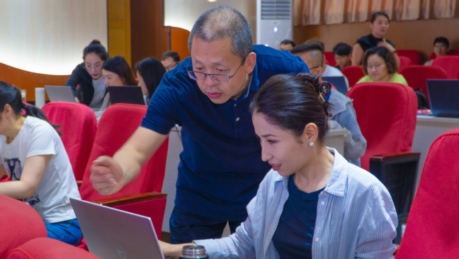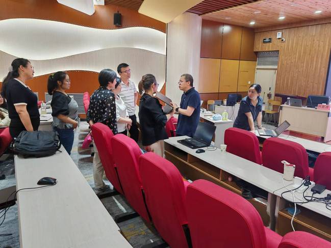 5月25日,何聚厚教授围绕教师数字素养发展和数字化教学转型探讨了实现教学数字化转型的理念、思路与途径,并以丰富的案例讲解了数字化教学转型下混合式教学设计的思路与流程。5月26日的AI赋能教学实训工作坊环节,何聚厚教授首先指导教师们进行了针对自己课程的混合式教学设计,并引导教师们通过与AI大语言模型的互动,一步步构建了自己的智能教学助手。