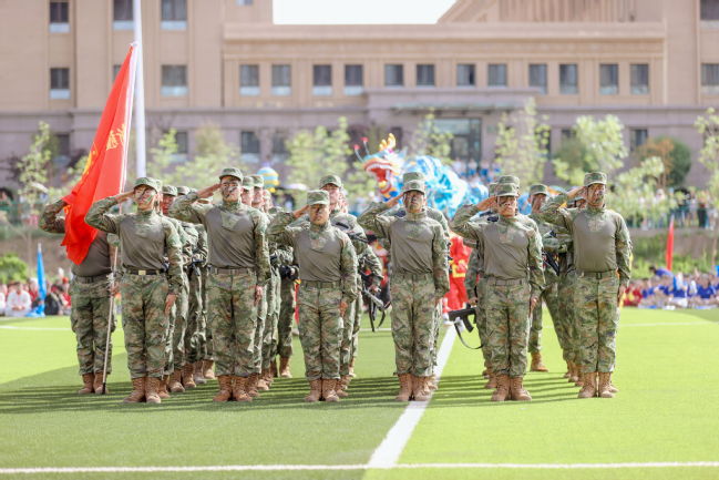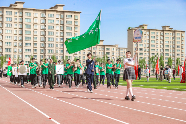 在激昂的音乐声中,国旗方队、退役军人方队、红旗方队、裁判员方队、研究生代表队和各学院代表队身着统一服装、迈着整齐步伐、高喊嘹亮口号通过主席台,接受在场师生的检阅。特色展示环节,各方阵或载歌载舞,或情景再现,或放飞白鸽,或展示标本,创意连连、精彩无限,展现了青年大学生朝气蓬勃、昂扬向上、奋发有为的精神面貌,赢得了在场师生的阵阵掌声。