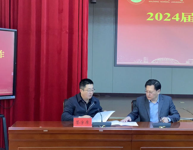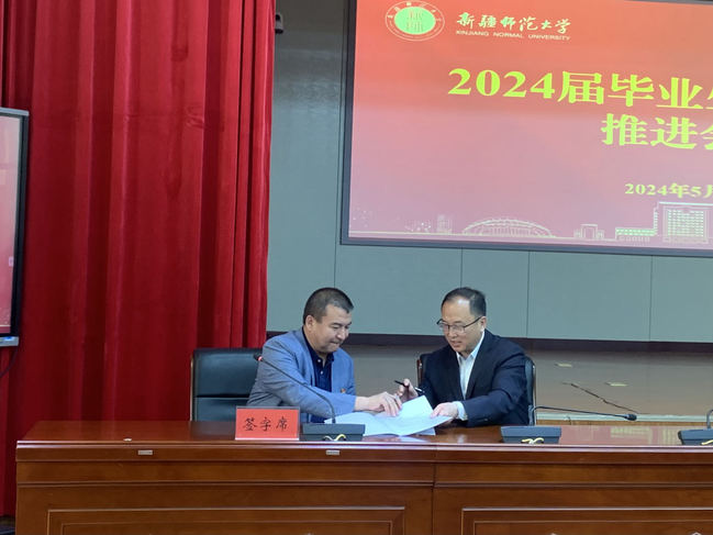 校党委副书记、校长吾满江·艾力出席会议并讲话,会议由校党委副书记刘俊主持。会上,校党委常委、宣传部部长高靖宣读了《365英国上市公司官网关于做好2024届毕业生就业创业工作的通知》,历史与社会学院党委书记白丽艳、化学化工学院党委副书记、纪委书记王强华就做好2024届毕业生就业工作作了会议发言。刘俊、高靖分别同美术学院党委书记比拉力江·阿不力孜、中国语言文学学院党委书记陈国栋签订了就业工作目标责任书。