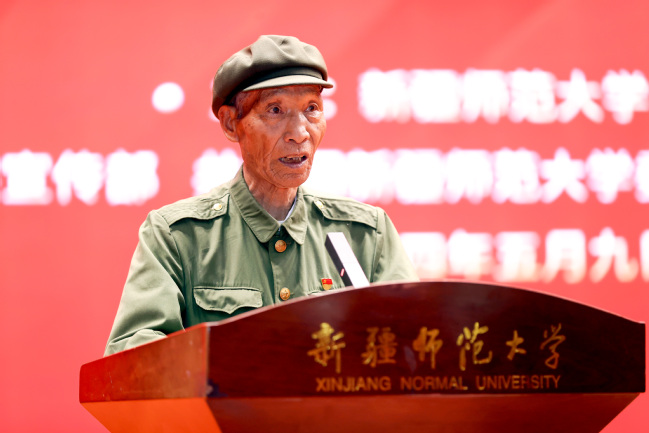 王成帮老人在报告中带领现场师生共同走进那段战争岁月,讲述他参军30余年,四进昆仑深入阿里地区侦查为部队搜集情报,同时多次帮助战友脱险的英勇事迹。在部队时,他曾多次立功并受到毛泽东、周恩来等老一辈党和国家领导人接见。退役后,他从“战场”到“沙场”,义务从事绿化工作30多年。即使身患重疾,他仍然坚定地说“哪怕生命到最后一刻,我仍然要为党的事业奉献一切”。
