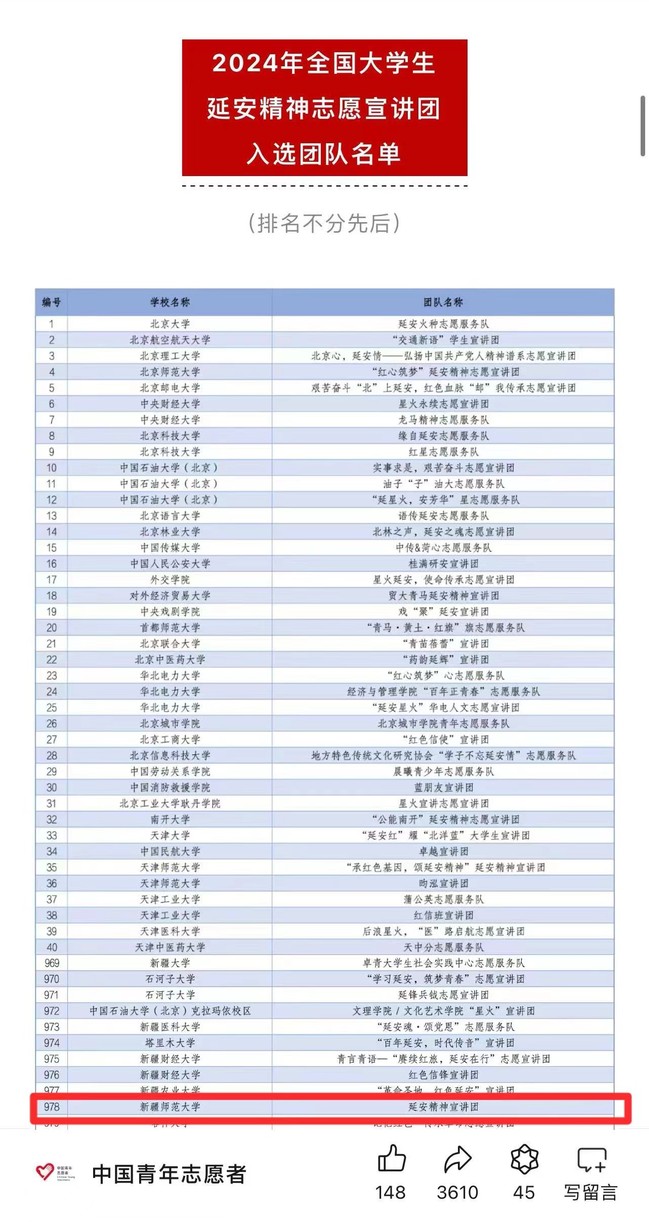 近日,大学生志愿宣讲团队入选名单公布,365英国3支队伍从全国八百多所高校的千余支队伍中脱颖而出,成功入选2024年全国大学生延安精神志愿宣讲团、井冈山精神志愿宣讲团和“两弹一星”精神志愿宣讲团。