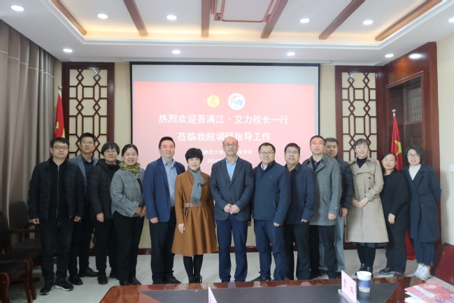 4月26日上午,校党委副书记、校长吾满江·艾力,校党委常委、副校长季荣一行到教育科学学院开展调研,并在文润楼109会议室举行座谈。学校发展规划处处长关文军等陪同调研。教育科学学院在家领导班子成员、学科带头人、学术带头人,学术骨干代表参加座谈。