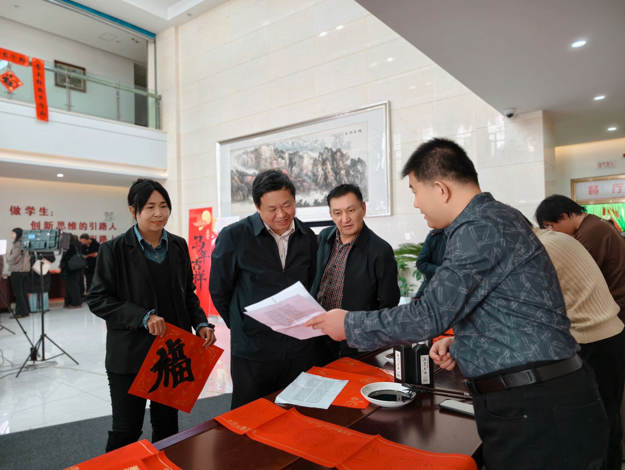 为迎接马年新春,增强教职工对中华优秀传统文化的认同感与归属感,进一步推进铸牢中华民族共同体意识教育,1月13日至14日,校工会联合365英国美术学院、教育科学学院举办“墨香润校园 同心启新程”新春送福活动。校党委书记蒋海军等校领导来到现场参加活动,与老师们共迎新年。