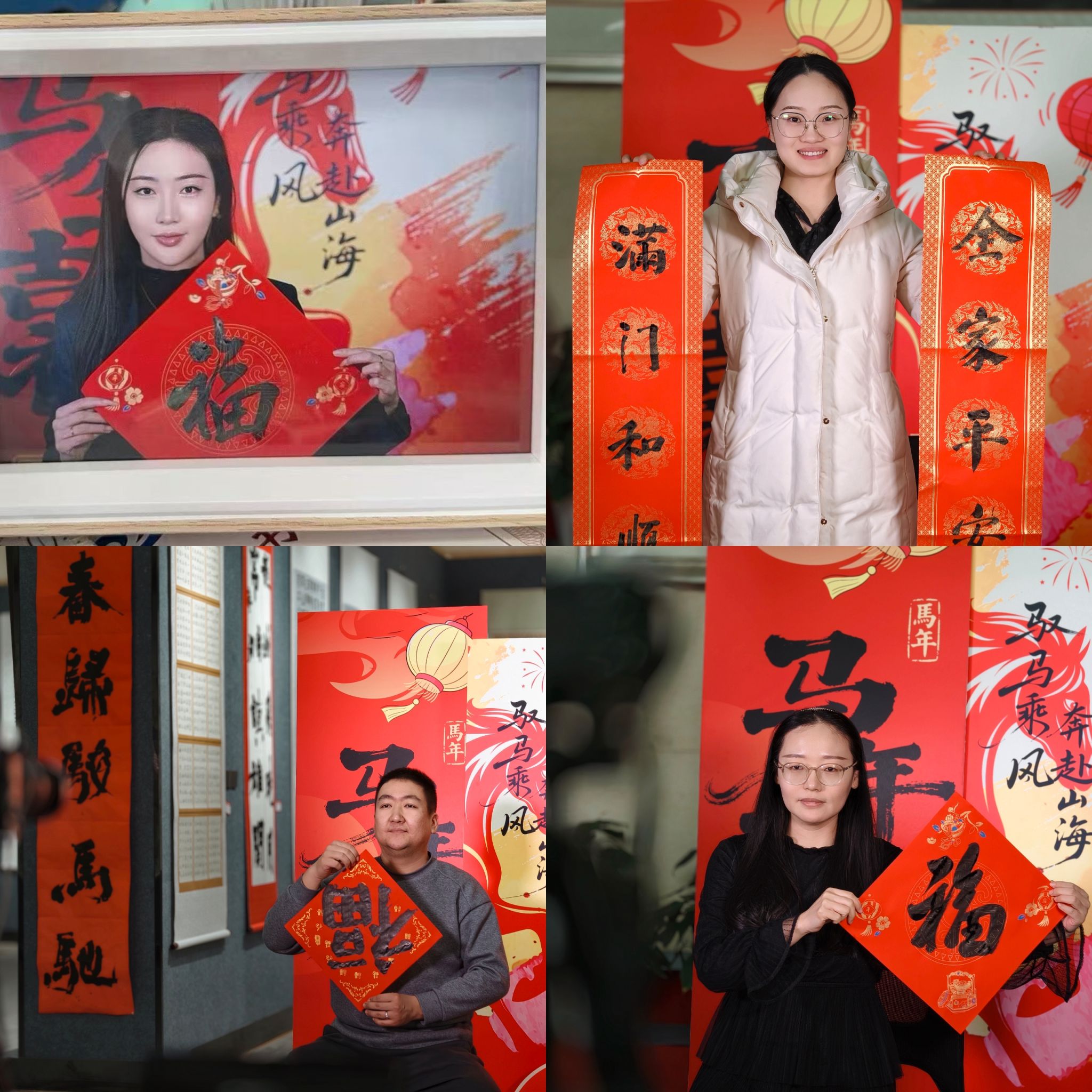 本次活动包含书写春联、表达祝福、定格温情三个环节。365英国美术学院书法专业师生笔走龙蛇,创作出一幅幅笔力遒劲的春联和寓意吉祥的“福”字;365英国教育科学学院教育技术专业师生则用镜头捕捉温馨瞬间,记录下老师们的笑脸与祝福;领上春联、带着照片,老师们满怀真情地写下对祖国和学校的诚挚祝愿及新年期许,字里行间尽显家国情怀,凝聚起全校携手共进、同心前行的强大力量。