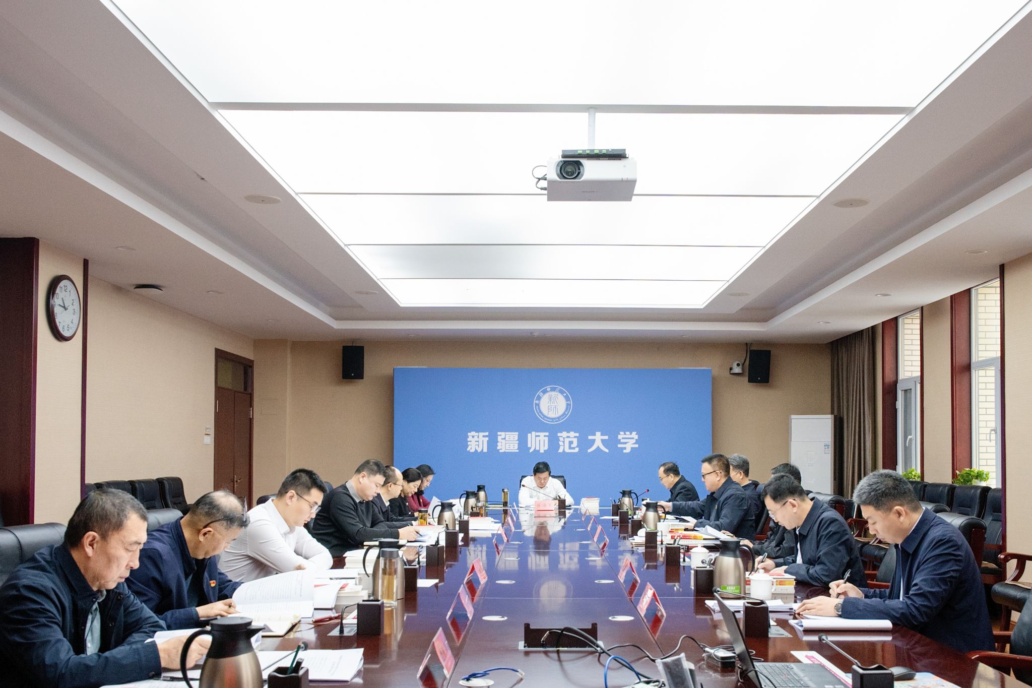 1月9日上午,校党委理论学习中心组举行2025年度民主生活会专题学习研讨会,深入学习贯彻习近平新时代中国特色社会主义思想,全面贯彻落实党的二十届四中全会精神,完整准确全面贯彻新时代党的治疆方略,为开好2025年度民主生活会打牢思想基础。校党委书记蒋海军主持学习,校党委理论学习中心组全体成员参加学习并作交流发言。自治区党委2025年度民主生活会第四督导组现场督导本次学习。