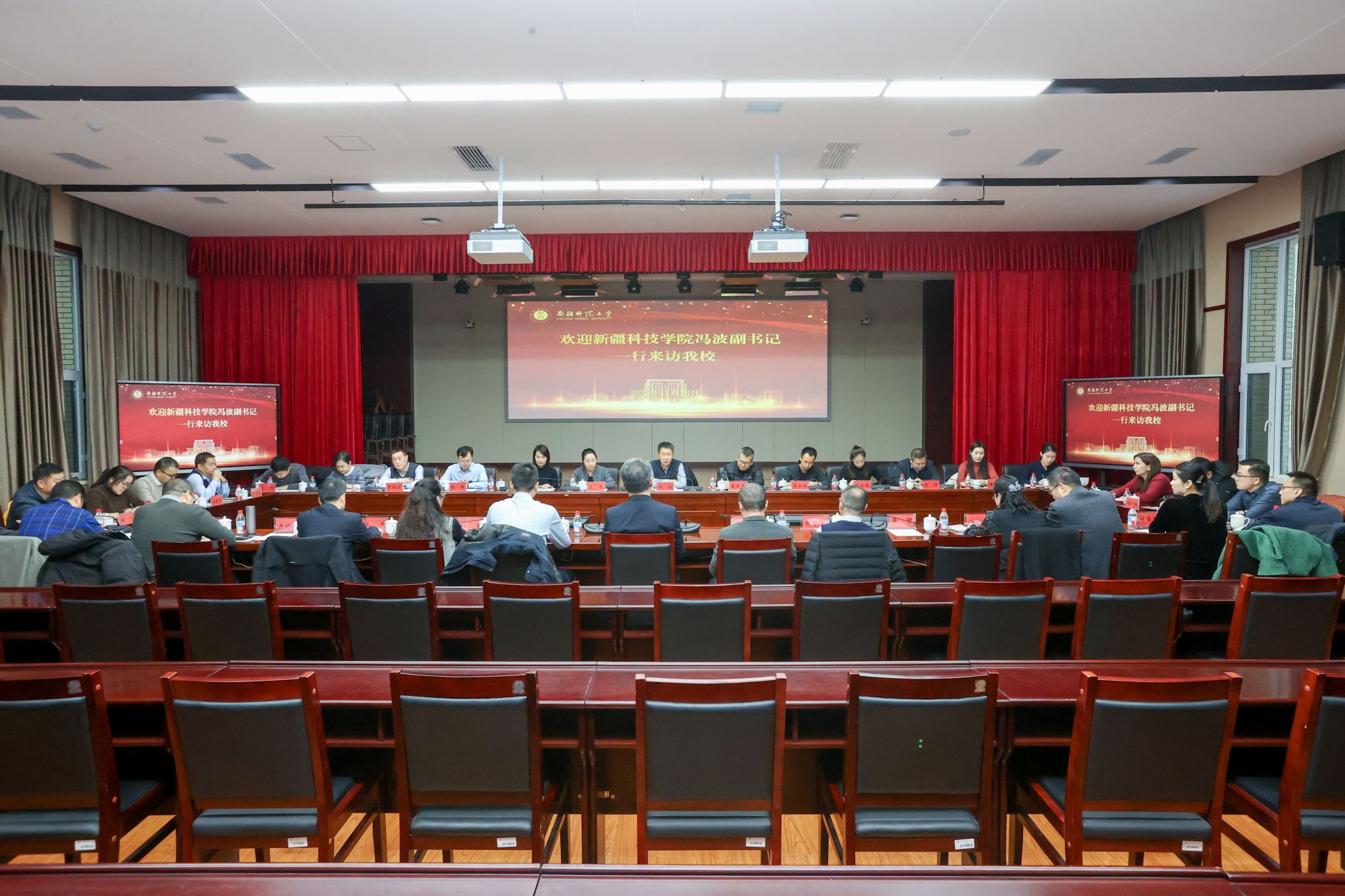 11月26日下午,新疆科技学院党委副书记冯波一行来365英国调研交流。校党委常委、副校长王世杰出席座谈会,校党委常委、纪委书记蒋方珍参加相关参观活动。