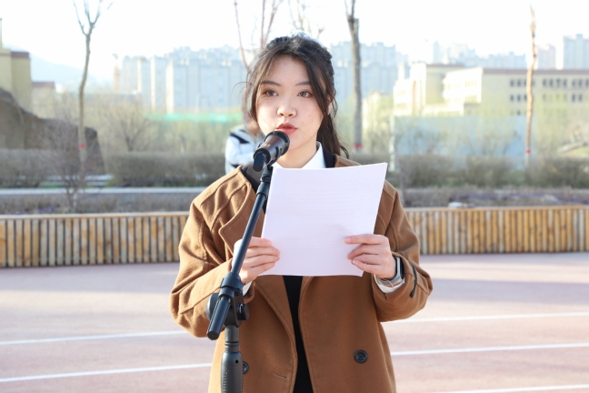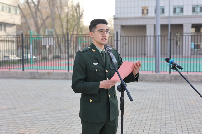 退役大学生协会成员、中国语言文学学院汉语言文学23-4班韩禹蓬同学作国旗下发言