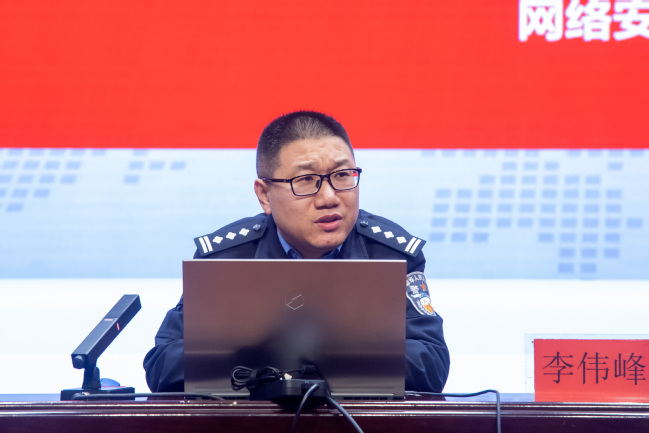 自治区公安厅网安总队舆情导控队队长李伟峰作专题讲座