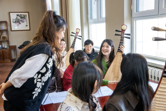 校党委高度重视美育实践体验活动,并以此作为强化中华优秀传统文化传承的有效举措,开课前,校党委书记葛国、校党委副书记刘俊来到教室了解琵琶体验课的筹备情况并与授课教师进行交流。