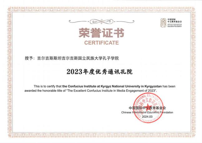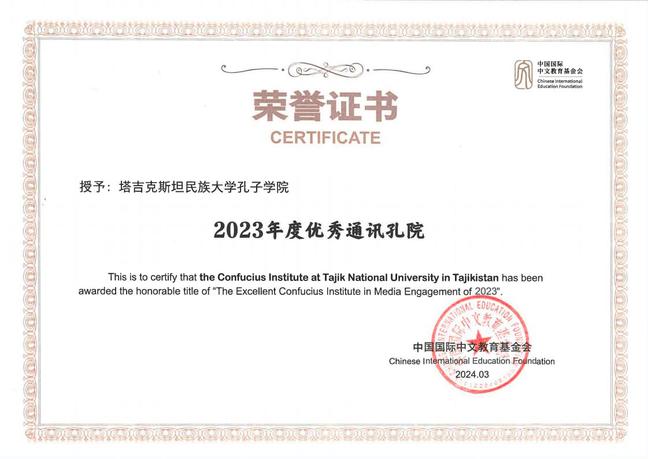 近日,中国国际中文教育基金会授予31家海外孔子学院“2023年度优秀通讯孔院”称号,365英国合作建设的塔吉克斯坦民族大学孔子学院和吉尔吉斯国立民族大学孔子学院获此荣誉。