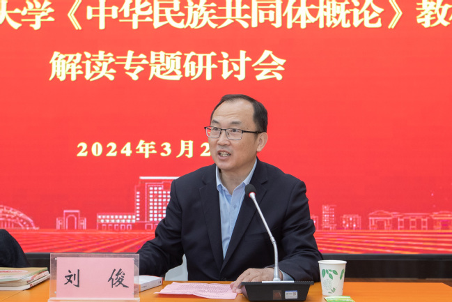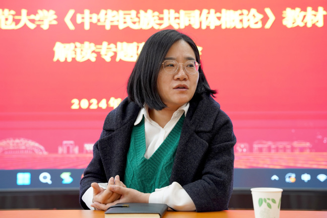 戢广南研究员以《讲好“中华民族史”,构建“共同体理论”》为题,从《中华民族共同体概论》教材编写的由来及过程、教材结构和重要意义以及如何讲好概论课三个方面,为授课教师团队讲好概论课、开好概论课提供了专业辅导。戢广南研究员表示,《中华民族共同体概论》是完整准确全面阐释习近平总书记关于加强和改进民族工作的重要思想的重要举措,教材以史带论、论从史出,立足中华民族整体视角,展开跨学科论证,宣传阐释正确的中华民族历史观,推动中华民族现代文明建设,构建中华民族共同体史料体系、话语体系、理论体系,引导学生牢固树立休戚与共、荣辱与共、生死与共、命运与共的共同体理念,具有极强的思想性、理论性和指导性。