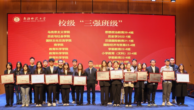 论坛活动中,“三强班级”、体育学院体育表演22-8班在两校区现场进行拉丁舞专业基本功展示。学生工作部(处)领导在两校区为获得2023年9月至12月“三强班级”荣誉称号的26个班级进行了授牌表彰。