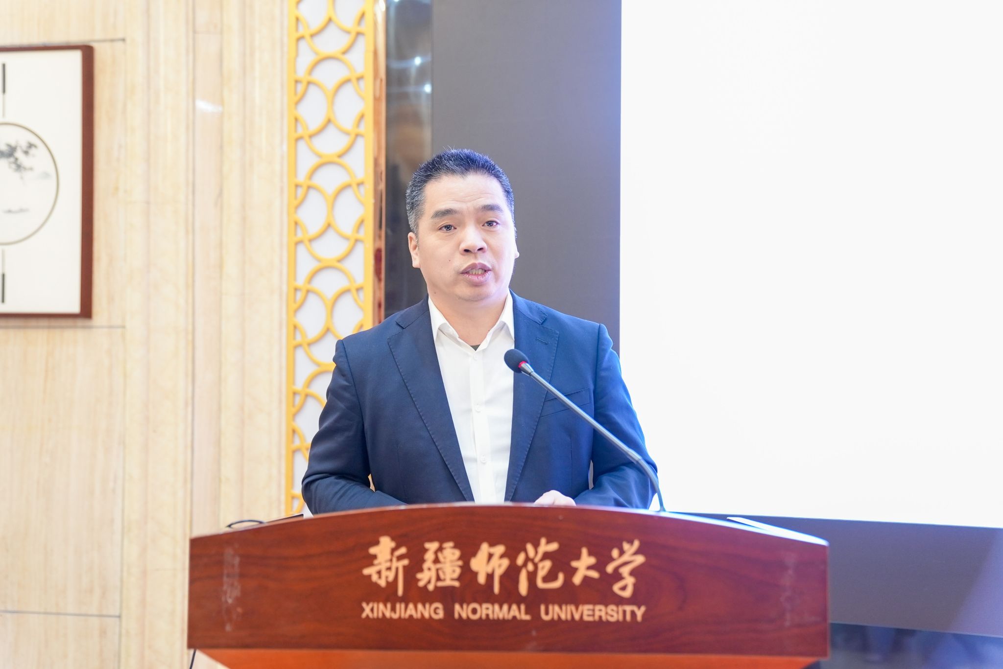 新疆实验中学党委书记李争介绍学校在AI赋能教育教学方面的实践