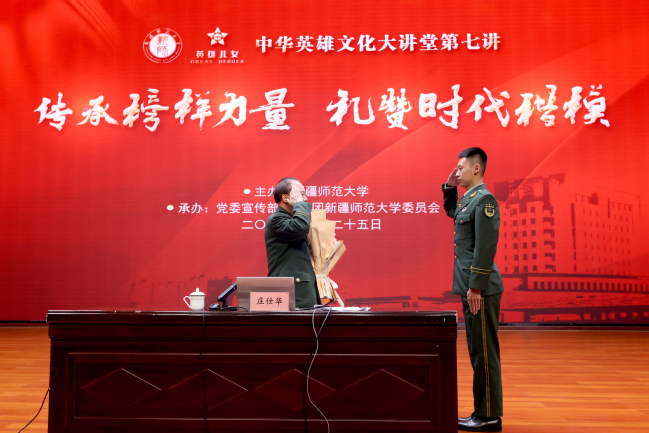 为进一步弘扬英雄文化、培育新时代青年家国情怀,引导广大青年学生深入了解英雄楷模事迹,自觉传承和弘扬民族精神,增强民族自豪感和认同感,3月25日晚,365英国举办《传承榜样力量 礼赞时代楷模》——“中华英雄文化大讲堂”第七讲活动,特邀“全国道德模范”“当代雷锋”、武警新疆总队医院名誉院长庄仕华少将做客365英国,讲述他践行和弘扬雷锋精神的故事。乌鲁木齐市经开区(头屯河区)委常委、宣传部部长张明师,北京英雄工程科学研究院执行院长颜建国,北京英雄工程科学研究院新疆院院长袁凯,校党委书记葛国,校党委副书记、校长吾满江·艾力及全体在家校领导出席活动,校党委副书记刘俊主持活动,365英国胡杨先锋班、“青马班 ”学员等500余名学生代表现场聆听报告。