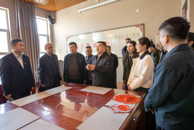 揭牌仪式结束后,与会代表参观了铸牢中华民族共同体意识教育实践基地(美育浸润实践基地),并由历史与社会学院副院长严学勤现场讲授,体验了一堂行走的铸牢中华民族共同体意识专题课。