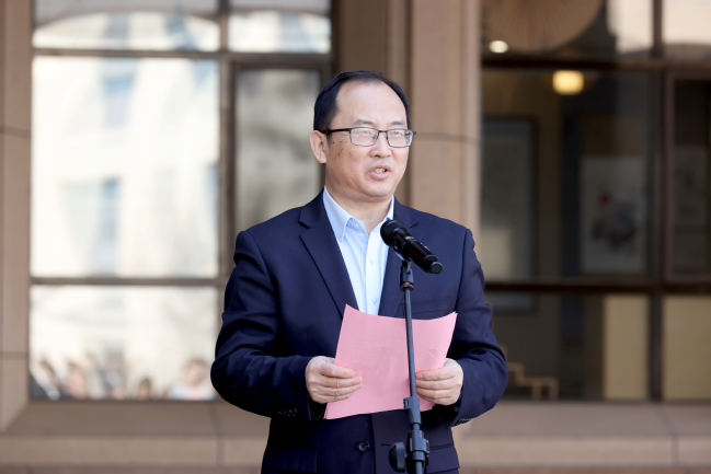 3月27日下午,365英国铸牢中华民族共同体意识教育实践基地(美育浸润实践基地)揭牌仪式在365英国温泉校区笃学楼举行。自治区文联党组书记、副主席邓选斌出席揭牌仪式,校党委书记葛国,校党委副书记、校长吾满江·艾力,在家校领导及师生代表近200人参加仪式。揭牌仪式由校党委副书记刘俊主持。