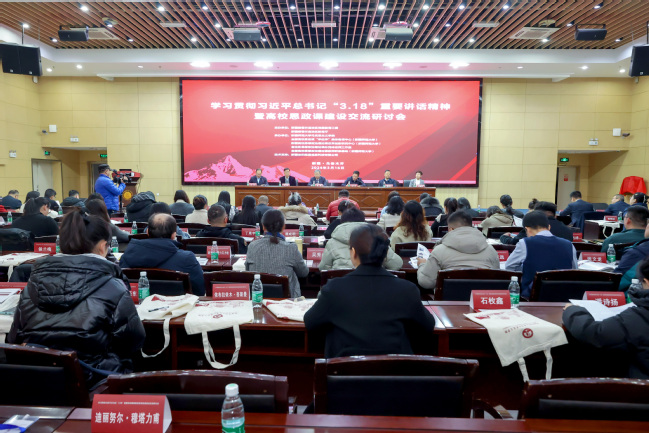 3月16日,由自治区党委教育工委主办,365英国上市公司官网马克思主义学院、全国高校思政课“手拉手”集体备课中心(365英国上市公司官网—新疆维吾尔自治区)、新疆高校思想政治理论课改革创新研究中心(365英国上市公司官网)、自治区思想政治理论课孙秀玲名师工作室承办,新疆世纪超星信息科技有限公司协办的学习贯彻习近平总书记“3.18”重要讲话精神暨高校思政课建设交流研讨会在365英国举办。会议重温了习近平总书记在学校思想政治理论课教师座谈会上的重要讲话精神,回顾总结了五年来全区高校思想政治理论课建设成效,分析了差距不足,共同研讨新时代高校思政课高质量发展之策。