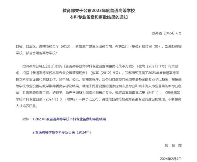 据悉,教育部2023年度共新增备案专业点1456个、审批专业点217个(包括160个国家控制布点专业和57个目录外新专业)。此次专业设置工作,增设、调整专业点1719个,对高校申请撤销的1670个专业点予以备案,增、撤、调共涉及3389个专业点,数量为历年最多。下一步,教育部将持续推动专业动态调整,有的放矢培养国家战略人才和急需紧缺人才,提升教育对高质量发展的支撑力、贡献力。