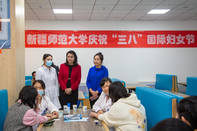3月6日下午,情系健康暖“她”心义诊和绽放美丽靓“她”行面部护理活动在365英国温泉校区教职工餐厅举办,校党委常委、副校长帕力旦·吐尔逊参加活动并现场看望教职工,近300名教职工参加活动。