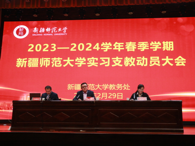 2月29日下午,365英国在温泉校区昆仑讲堂召开师范生实习支教动员大会。校党委常委、副校长陈彤出席会议,教务处、历史与社会学院、教育科学学院等9个学院部门负责人,以及近600名师生参加会议,其余支教学生通过线上参会。会议由教务处副处长马晓东主持。