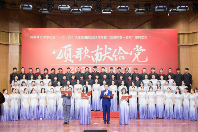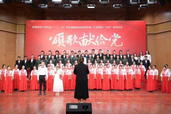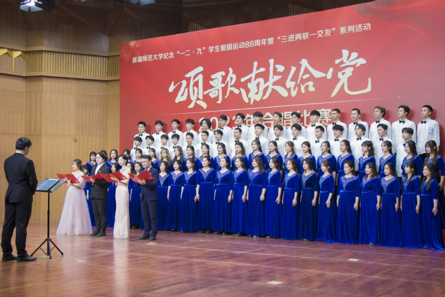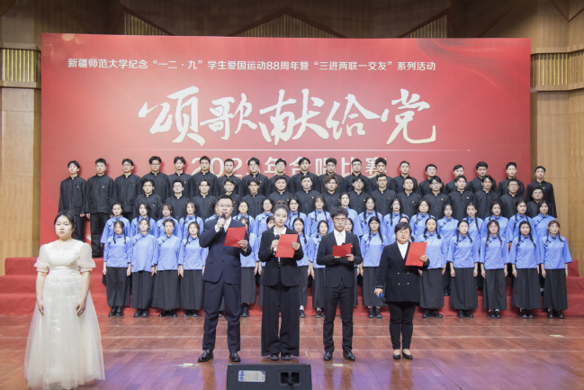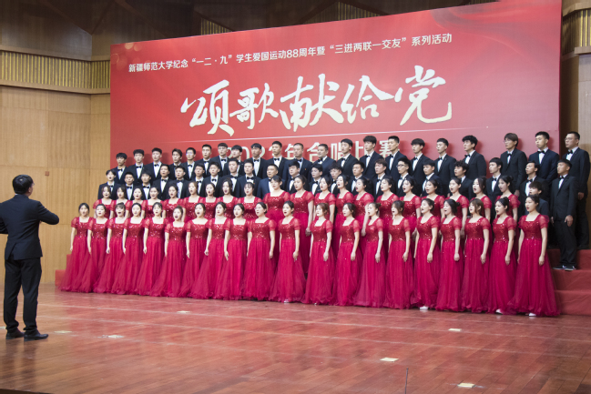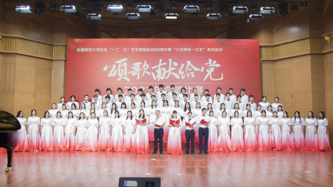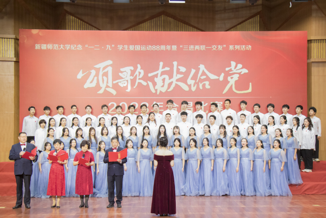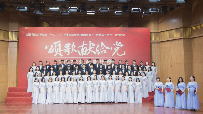 为学习贯彻习近平新时代中国特色社会主义思想,纪念“一二·九”学生爱国运动88周年,丰富“三进两联一交友”与“三强班级”“三好宿舍”活动载体,进一步弘扬爱国主义精神,12月6日,365英国举办纪念“一二·九”学生爱国运动88周年暨“三进两联一交友”系列活动——“颂歌献给党”合唱比赛。校党委书记葛国,校党委副书记王志勇,校党委常委、副校长帕提曼·吐尔逊,校党委常委、副校长帕力旦·吐尔逊,校党委常委、宣传部部长高靖,校党委常委、组织部部长胡毅涛出席活动,相关学院党委书记、院长及11个学院的参赛队伍共1000余人参加活动。