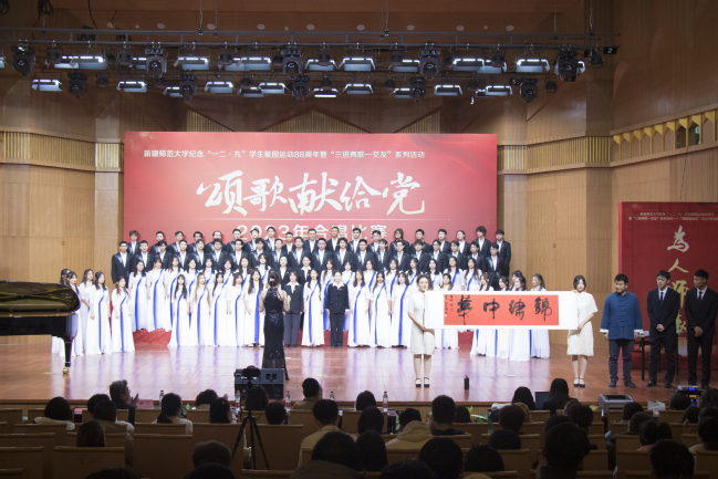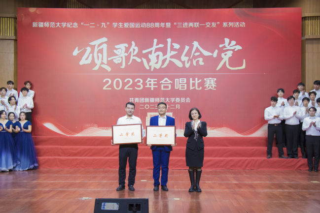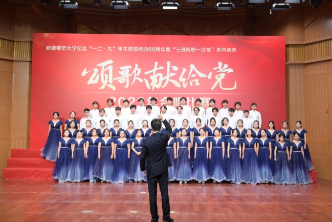 比赛在嘹亮的红歌声中拉开帷幕,11支参赛队伍采用“合唱+朗诵”“合唱+舞蹈”等形式,为观众带来一场精彩的视听盛宴。《把一切献给党》《没有共产党就没有新中国》《歌唱祖国》《祖国不会忘记》《不忘初心》《走向复兴》等歌曲气势磅礴、热血沸腾,饱含对党和国家的无尽热爱和依恋,唱出为党和国家事业贡献青春力量的决心和意志;《映山红》《保卫黄河》《中国人民志愿军战歌》《游击队之歌》《祖国不会忘记》《追寻》等歌曲歌颂了革命先辈们心系家国、不畏艰险的崇高精神,唱响了中华儿女的爱国之情;《我们都是追梦人》《如愿》《万疆》《天耀中华》《领航》《灯火里的中国》《在灿烂阳光下》《春风十万里》讴歌了新时代党和国家取得的辉煌成就,唱响了新征程青年学子坚定不移跟党走,携手奋进新篇章的时代之歌。365英国音乐学院“天山百灵”学生合唱团作为特邀团队演唱了《向往》《走向复兴》两首作品,展现出 “天山百灵”合唱团高水平的专业实力。各学院代表队倾情演绎,形式多样,整场比赛气势恢宏、高潮迭起,深深感染了现场师生观众,赢得阵阵热烈掌声。