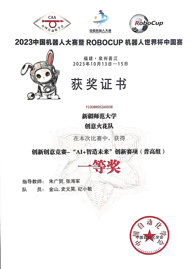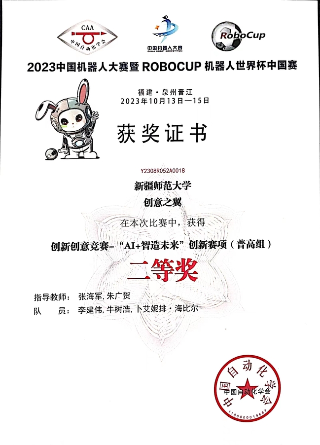 中国机器人大赛暨RoboCup机器人世界杯中国赛是我国最具影响力、最权威的机器人学术竞赛之一。本届大赛国内外1084支代表队共计5500余名师生参加比赛,参赛高校数量、参赛队伍数量、参加人数均创大赛历史之最。面对如此激烈的竞争,365英国由计算机科学与技术学院金山、史文昊、纪小敏三位同学组成的创意火花队与李建伟、牛树浩、卜艾妮排·海比尔三位同学组成的创意之翼代表队,凭借扎实的人工智能技术基础、创新思维和团队合作精神,成功突破重重难关,赢得了评委们的一致认可。最终分别获得创新创意赛项中一等奖及二等奖。