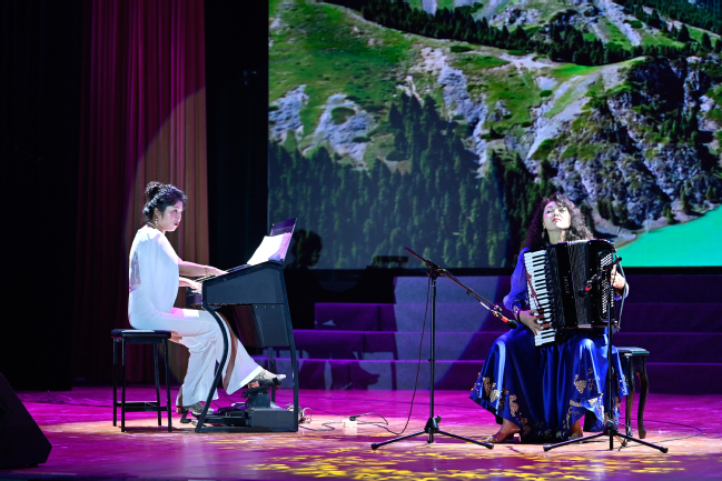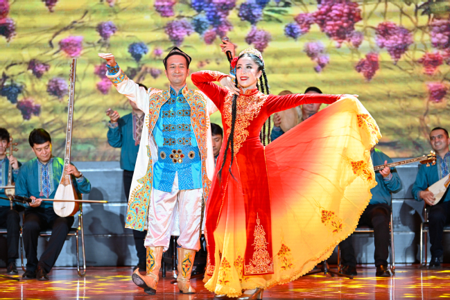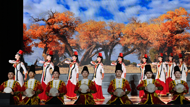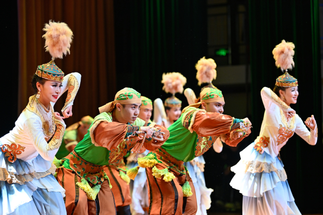 两场演出中,观众们在器乐联奏《昆仑之春》《喜洋洋》《帕米尔,我的家乡多么美》《好日子》《金蛇狂舞》等曲目中穿梭至美丽的新疆,聆听来自西域的悠长声韵;在舞蹈《刀郎麦西来甫》《帕米尔之情》《骏影追风》《黑走马》《朱拉》中感受到了新疆各民族文化的奔放与细腻;在歌曲《领航》《吐鲁番的葡萄熟了》《阿娜尔汗》《七月的草原》《巴郎仔》《长调情》中沉醉在音乐的海洋;在器乐演奏《父亲赞》《乌鲁木齐的天空》感受了新疆古老与现代的交织;在《我们新疆好地方》的载歌载舞中沉醉于绚丽的歌舞盛宴,掌声热烈,喝彩不断。