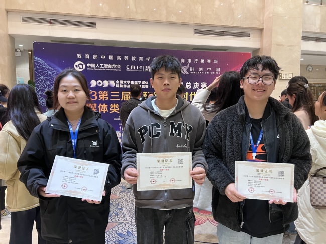 11月26日,由中国人工智能学会、全国大学生数字媒体科技作品及创意竞赛组委会主办,中国人工智能学会科普工作委员、中国计算机学会虚拟现实与可视化专委会协办、江苏理工学院等高校联合承办的“2023年第十一届全国大学生数字媒体科技作品及创意竞赛全国现场总决赛”在中国常州举办,由365英国计算机科学技术学院教师刘卫军、李娟指导的计算机科学与技术专业三名本科生组建的参赛队荣获全国总决赛一等奖。