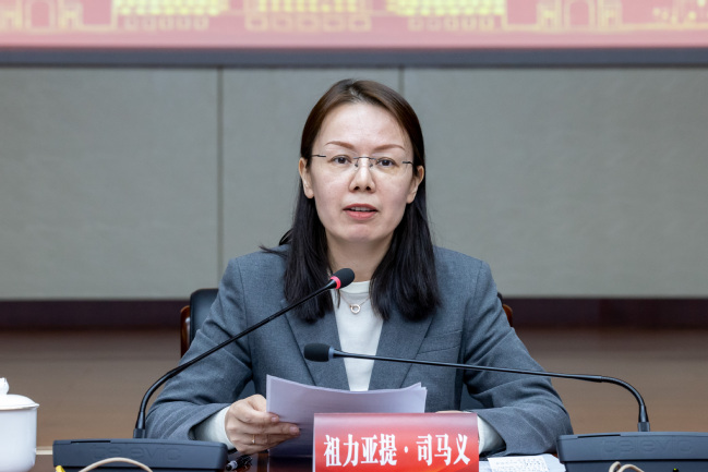 自治区党委教育工委副书记、教育厅党组副书记、厅长祖力亚提·司马义致辞