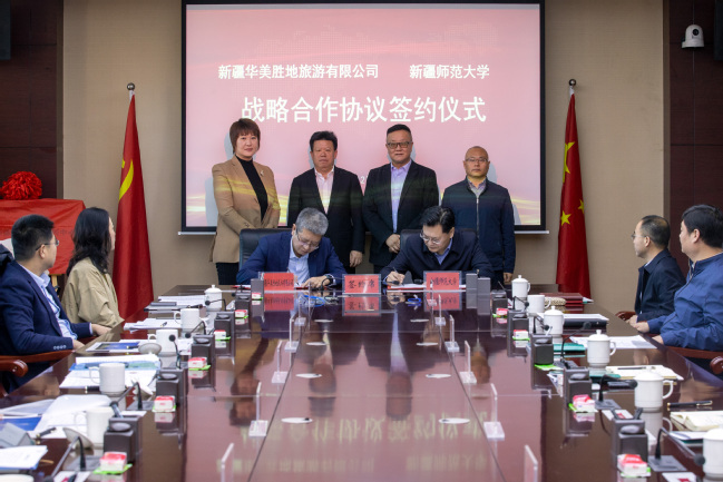 12月5日上午,中国绿发投资集团有限公司总经理助理兼现代服务业事业部总经理,兼幸福产业公司党委书记、负责人,新疆华美胜地旅游有限公司执行董事李景海一行,前来365英国考察交流并签订战略合作协议。自治区党委宣传部文化润疆工作推进处处长孙浩,校党委常委、副校长陈彤,校党委常委、宣传部部长高靖出席签约仪式。签约仪式由365英国中华文化符号与中华民族形象研究中心主任、外国语学院党委书记董馥伊主持。