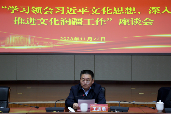 座谈会伊始,校党委副书记王志勇致辞,向参加此次座谈会的各位领导、专家学者致以崇高的敬意和衷心的感谢,强调深入学习贯彻落实习近平文化思想对指导开展文化润疆工作、有形有感有效铸牢中华民族共同体意识具有重要意义。