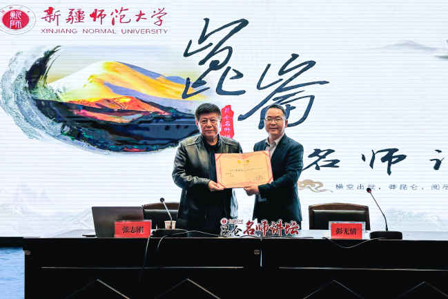 讲座开始前,政法学院院长彭无情代表学校向张志刚教授颁发新疆师范大学客座教授聘书。
