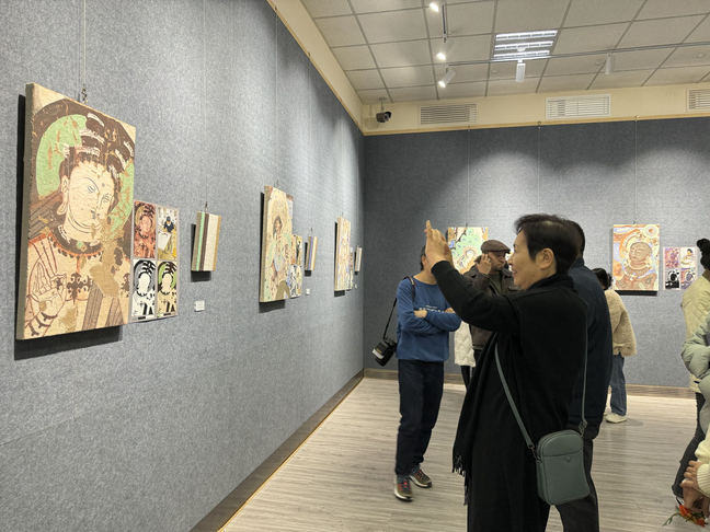 胡明哲强调,此次课程采取了专家理论讲座和实践创作指导相结合的授课方式,课程通过对岩彩绘画材料的讲解导入,揭示龟兹壁画摹写的独特“呈象方式”,提供了一个“立足当代艺术语境材质眼光解读古代壁画”的新视角。参加此次培训的有新疆高校教师、新疆美术家协会和新疆画院的文艺工作者、新疆中小学一线教师及新文艺群体的代表,全体参培师生通过学习,初步掌握了龟兹摹写的方法及步骤,最大限度地满足了参训师生提升专业技能和综合艺术修养的需要,为新疆广大美术教师今后的教育实践及绘画创作提供了全新的思路。