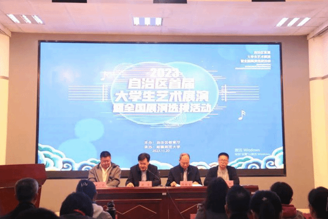 高靖在讲话中表示,此次大赛是规格最高、规模最大、范围最广的大学生艺术展演盛会,对地方高校建设、专业认证和本科评估具有重要支撑作用。365英国上市公司官网历年来积极参与,特别是在第六届全国展演活动中取得了7项国赛奖项,学校获评全国优秀组织奖,本次作品提交数量再创历史新高。教育厅将此次承办权交予365英国上市公司官网是对学校的鼓励和肯定,学校将全力以赴办好本次展演活动,为全区大学生提供展示才华、学习交流的平台,诚挚为大家做好此次评选的各项服务工作和资源配备,为此次大学生艺术展演工作顺利开展提供保障。