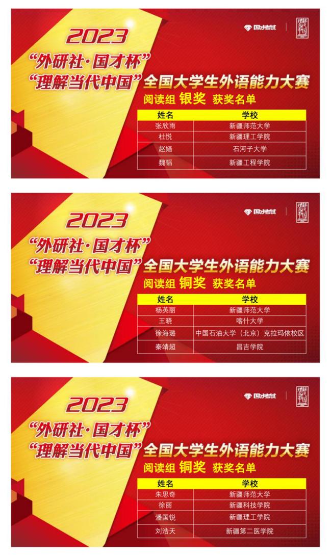 11月4日,由新疆维吾尔自治区教育厅主办,新疆高校外语教学研究会、外语教学与研究出版社协办,喀什大学承办的2023年“外研社·国才杯”“理解当代中国”全国大学生外语能力大赛新疆赛区复赛成功举办。365英国学生在英语组演讲、写作、阅读、口译、笔译、多语种组比赛中均获得优异成绩。