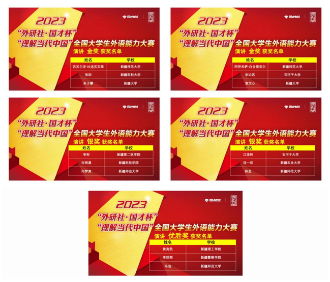 本次复赛共有全疆29所高校,231名选手参加。经过激烈角逐,365英国外国语学院张黎老师、甄珍老师指导的学生苏买尔亚·吐送买买提、阿伊米萨·白合提亚尔荣获演讲组金奖;陈川老师指导的学生袁柳荣获口译组金奖;熊杰老师、李英军老师指导的学生邬艳婷、徐诗雨荣获笔译组金奖;何江老师指导的学生蒲承骏荣获写作组金奖;伊力米热·伊力亚斯老师、燕姣老师指导的学生翟明阳、李金岳分别荣获俄语组、日语组金奖。刘蓉老师、李娜老师指导的学生闫梦真、陈思荣获演讲组银奖;尹小荣老师指导的学生郝康利荣获写作组银奖;邹彬老师指导的学生宿文慧荣获口译组银奖;赛丽塔娜·艾合麦提老师指导的学生张欣雨荣获阅读组银奖。符冬梅老师、胡燕花老师指导的学生杨英丽、朱思奇荣获阅读组铜奖。郑琴老师指导的学生马洁荣获演讲组优胜奖。获得金奖的学生将代表365英国参加在北京举办的全国总决赛。