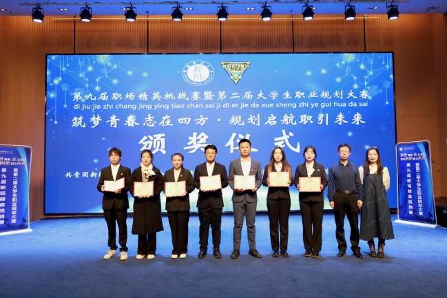 当日的大赛以“筑梦青春志在四方、规划启航职引未来”为主题,分成长赛道、就业赛道两组比赛,邀请七位企业资深经理担任评委,最终评选出一等奖2名、二等奖4名、三等奖6名、优秀奖18名,优秀指导教师奖11名,优秀组织奖9个。