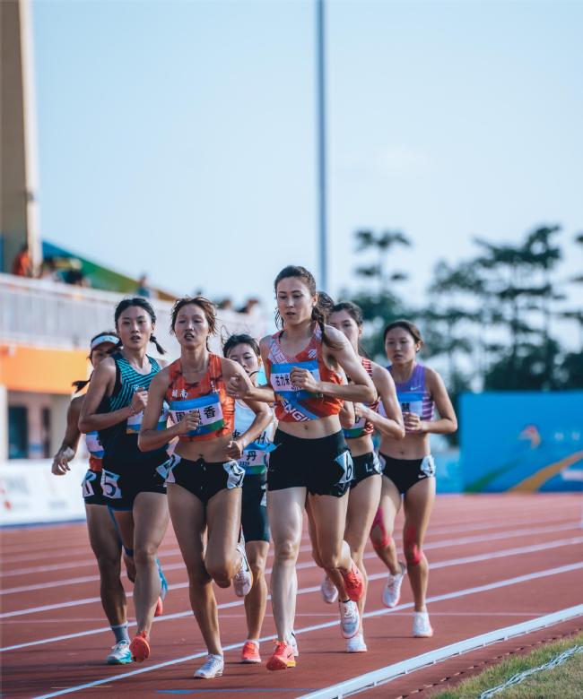 古力米拉·赛依提与美丽日班·吾不力卡斯木(右二)参加女子大学甲组800米决赛