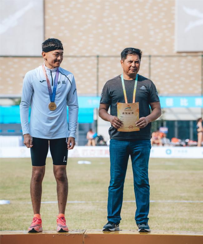 沙吾列提·赛里克与教练员阿布都克依木·阿布都热合曼领奖