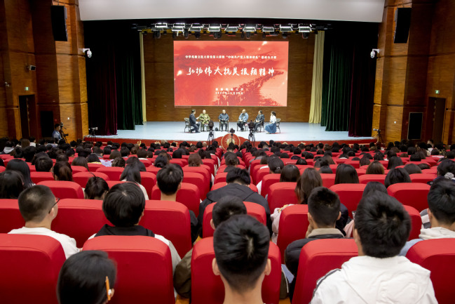 访谈开始前,参加活动的嘉宾和志愿军老战士缓缓步入现场,全场师生起立送上了经久不息的掌声。马克思主义学院学生深情朗诵的著名报告文学《谁是最可爱的人(节选)》,带领现场师生走进那段烽烟滚滚的光辉岁月,共同追忆当年志愿军战士保家卫国、守护和平的故事。