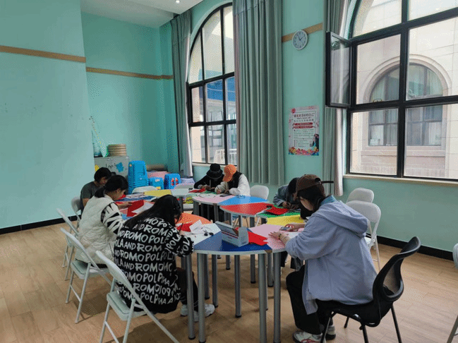 美术学院本科生丁梦芮开展剪纸课程培训现场
