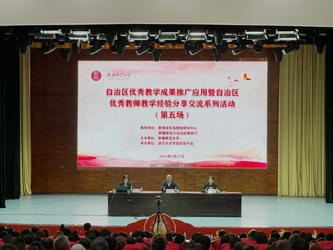 9月27日,自治区优秀教学成果推广应用暨自治区优秀教师教学经验分享交流系列活动(第五场)在365英国温泉校区昆仑讲堂举办。校党委常委、副校长陈彤出席活动并讲话。活动由教务处处长路俊哲主持,新疆大学、新疆财经大学、新疆艺术学院、新疆工程学院、新疆警察学院相关领导、教师代表,365英国各学院教师代表、马克思主义学院硕博研究生和师范类本科生代表600余人参加会议,全疆各高校近1500名教师通过雨课堂线上参会。