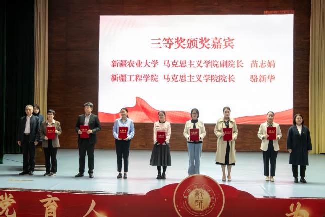 为深入学习宣传贯彻党的二十大精神,把学习贯彻习近平新时代中国特色社会主义思想主题教育不断引向深入,持续推动习近平新时代中国特色社会主义思想进教材、进课堂、进头脑,有效提升自治区高校思想政治理论课(以下简称“思政课”)教师队伍教育教学水平,增强思政课的针对性、有效性。9月23日至24日,由自治区党委教育工委、自治区教育厅主办,新疆高校思想政治理论课改革创新研究中心(365英国上市公司官网)承办,新疆农业大学、新疆工程学院、新疆职业大学、昌吉学院协办的自治区第五届高校思想政治理论课教学展示活动决赛及颁奖仪式顺利举办。
