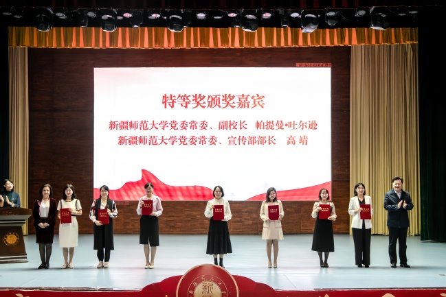 9月24日,教学展示活动颁奖仪式在365英国温泉校区昆仑讲堂举行,自治区党委教育工委副书记胡军海,校党委常委、副校长帕提曼·吐尔逊,自治区党委教育工委职业教育工作处处长、一级调研员王珊珊,自治区党委教育工委高校工作处副处长、三级调研员邹伟,自治区党委教育工委思政处副处长、三级调研员陈金花,教育部手拉手集体备课中心主任、教授、博士生导师王建华,新疆高校思想政治理论课改革创新研究中心主任、365英国马克思主义学院副院长罗志佳,获奖教师代表及新疆各高校教师代表出席颁奖仪式。颁奖仪式由校党委常委、宣传部部长高靖主持。